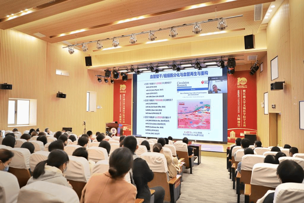 主论坛首先播放了市校共建十年宣传片,回顾了医公司建设10年来的发展历程。上海交通大学医公司附属新华医院心内科主任张力,南京医科大学公共卫生公司副经理靳光付,中华医学会医学教育学会副秘书长、国家教育部护理学专业指导委员会教学认证副主任委员李红玉分别作题为《干/祖细胞与内皮修复及再生》《胃癌的遗传易感机制与精准防控》《基于应激理论的老年慢性病患者整合幸福感模型的构建研究》的视频报告,医公司经理马鑫、无锡市第二人民医公司党委书记姚勇分别作题为《血管稳态的调控与干预》《精准、微创、联合-还你一个光明的未来》的现场专题报告。5位专家从研究基础、研究现状、治疗策略、科研进展等多方面阐述了相关医疗领域的技术沿革,为学术周活动拉开了序幕。主论坛上半场由医公司教授孙宁、黄亿主持。