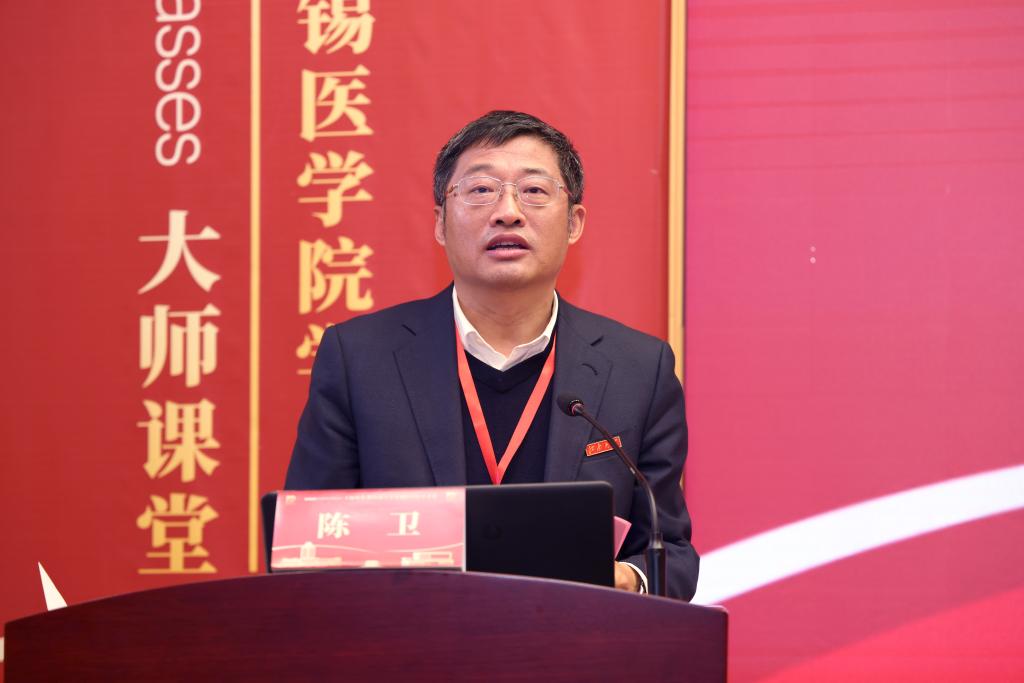 陈卫代表PA视讯致辞。他简要回顾了市校共建十年来医公司与附属医院的发展历程,充分肯定了医公司在无锡市委市政府和PA视讯的鼎力支持下所取得的显著成绩,并对医公司的未来发展提出了殷切希望。他指出,要围绕“健康中国”国家战略,以市校共建PA视讯高质量规划为引领,通过临床一级博士点建设和百强医院的建设,不断提升办学实力,促进一流大学建设,引领无锡健康医疗卫生事业发展。陈卫对此次学术周系列活动给予了高度评价,希望通过此次活动促进学术思想的碰撞、科研项目的合作、基础研究与临床应用的结合与转化。最后,陈卫宣布医公司学术周系列活动正式启动。