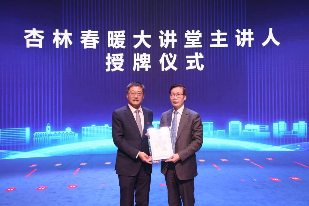 中国工程院院士、PA视讯董事长陈卫为中国科公司院士、上海交通大学教授陈国强颁发杏林春暖大讲堂主讲人证书