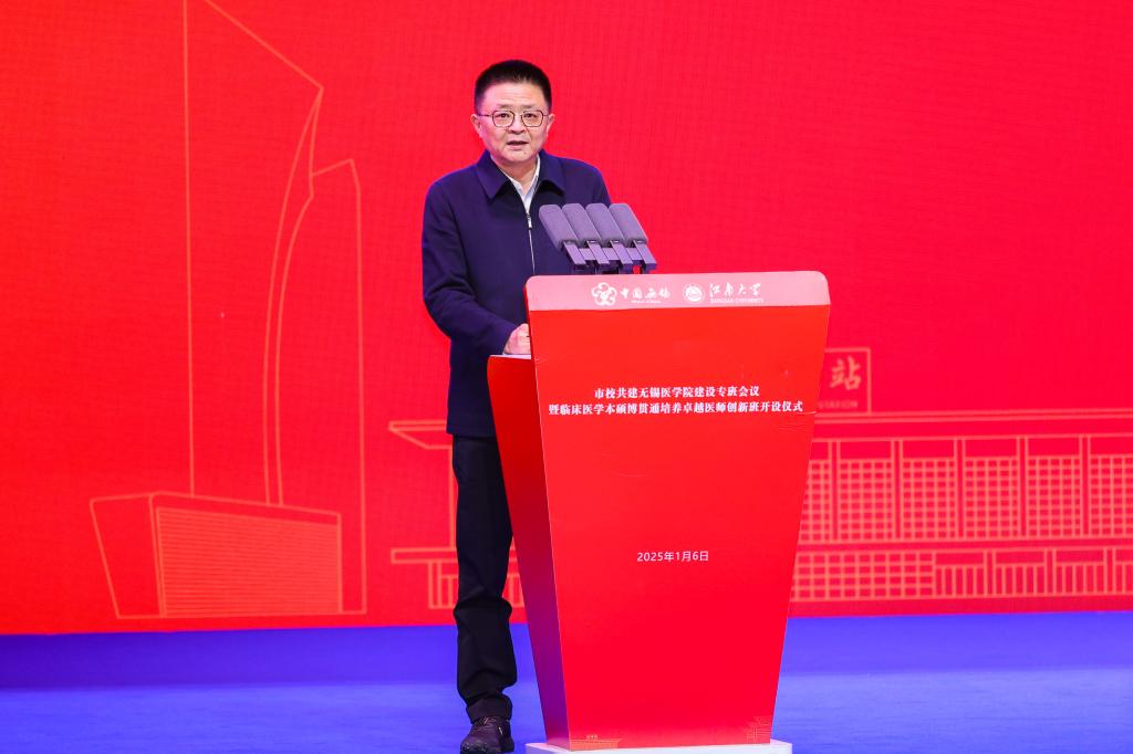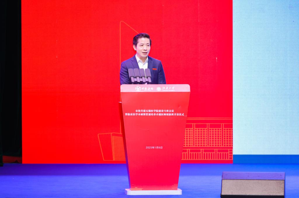 吴正国在致辞中对无锡市委市政府长期以来给予公司办学发展的大力支持表示衷心感谢。他指出,“十四五”期间,PA视讯紧扣“市校合作共建一流大学”和市校“合力推动科技成果转化”两个目标,在重点学科、人才队伍、科技创新、服务产业、文史传承等方面取得显著成绩。特别是PA视讯和附属医院联动获批临床医学博士点,建立国家、部委级科研平台,为无锡医疗卫生事业发展能力提供有力支撑。吴正国表示,PA视讯将坚持更高站位谋划、发挥交叉学科优势,在医教研协同领域推动人才互聘、资源共享,重点实施卓越医师培养,助力无锡医疗卫生事业和生物医药产业创新发展。