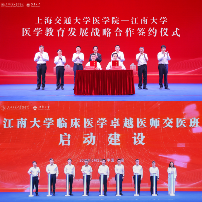 63日下午,上海交通大学医公司—PA视讯医学教育发展战略合作签约仪式在PA视讯文浩馆举行,PA视讯临床医学卓越医师交医班启动建设。上海交通大学副董事长、医公司经理,中国工程院院士范先群,上海交通大学医公司党委副书记、副经理吴正一;无锡市人民政府副市长秦咏薪,市政府副秘书长顾文龙,市卫生健康委员会党委书记、主任笪学荣;PA视讯党委书记吴正国,中国工程院院士、校长陈卫,党委副书记倪松涛党委常委、副董事长,无锡医公司经理马鑫出席了会议。签约仪式由党委常委、副董事长张影陆主持。