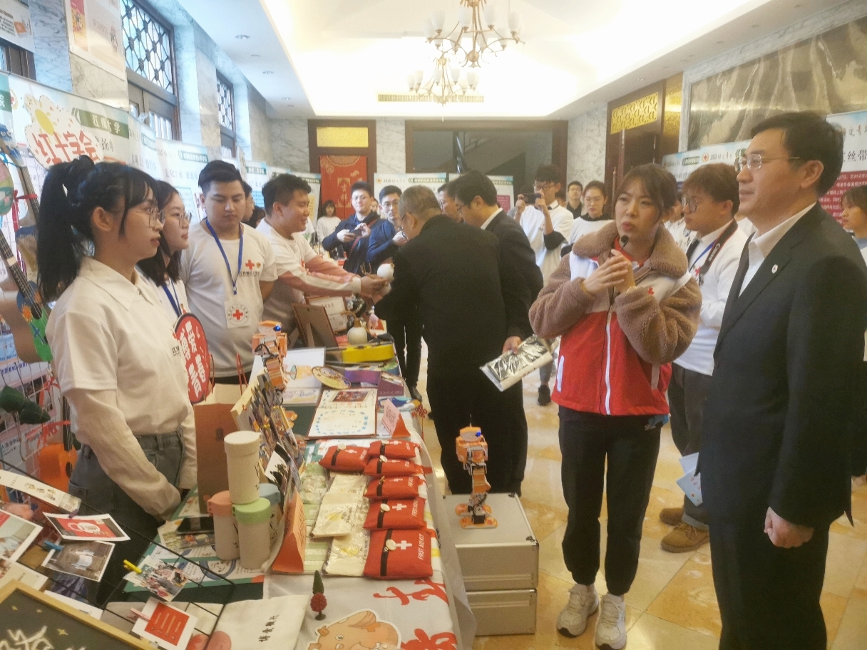 图2 江苏省红十字会党组书记、常务副会长齐敦品等领导到公司志愿服务展位前观摩指导