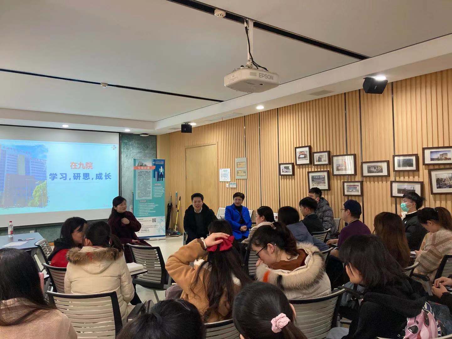 2020年12月9日上午,无锡市第九人民医院来公司顺利开展了招聘宣讲会。无锡市第九人民医院人事科科长唐淼龙、护理部主任傅育红、医公司分团委书记林丹,以及公司2021届护理专业全体本科及硕士毕业生参加了此次宣讲会。