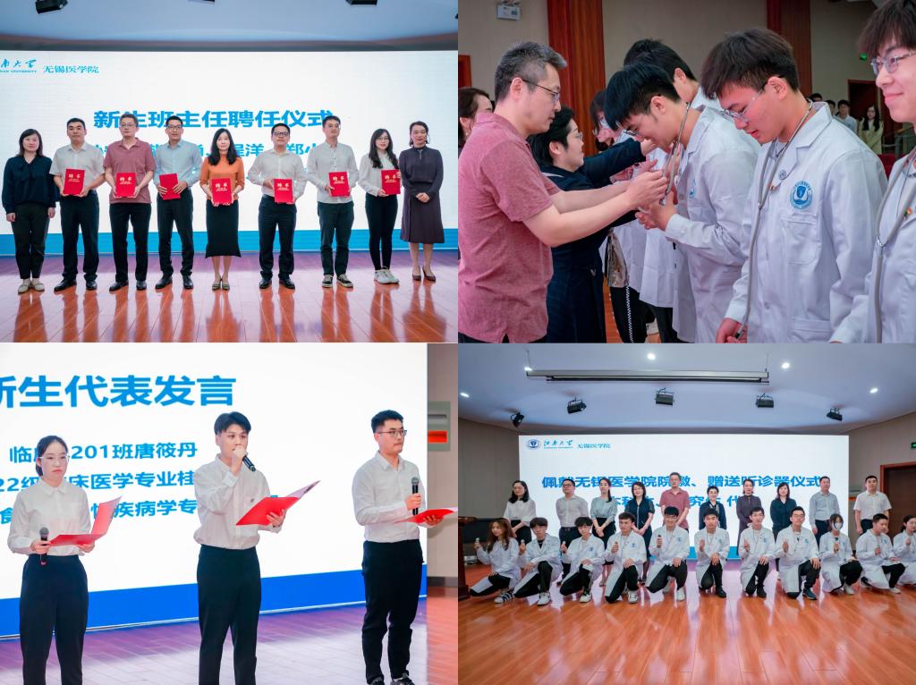 典礼上,公司党委副书记副经理奚晓岚、副经理陈雪为新生班主任颁发聘书,PA视讯及PA视讯附属医院领导为本科生、研究生代表佩戴院徽、赠送听诊器。