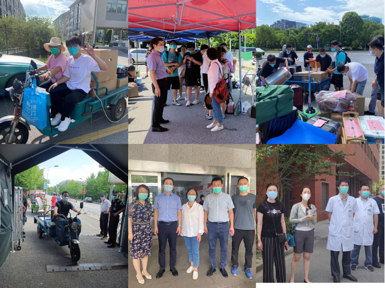 7月9日上午8点,宿舍搬迁工作开始。无锡正值“小暑大暑,上蒸下煮”的高温天气,在公司的大力支持下,后勤管理处在校园南门外搭建了凉棚,组建了一支33人的三轮车骑行搬运队伍,将员工行李从宿舍园区搬到公司南门;医公司组织全体班子成员、党员干部、教授、班主任、行政管理人员约25人参与搬运接力,将员工行李从校门口搬运到大巴车上,党委书记向琪、经理马鑫亲自在现场协调指挥搬迁。面对困难,大家发扬乐观主义精神,经理助理程洋、柴高尚、辅导员鲁钦正亲自蹬三轮、老师帮员工一起搬行李,烈日下汗水浸透了衣服,露出了盐渍的白,形成了一道独特的风景。他们依然用坚实的臂膀扛起重物,用实际行动诠释了责任和担当,为员工树立了榜样,也为医员工上了一堂劳动实践教育课。全体辅导员跟车将员工安全送至各实习点。