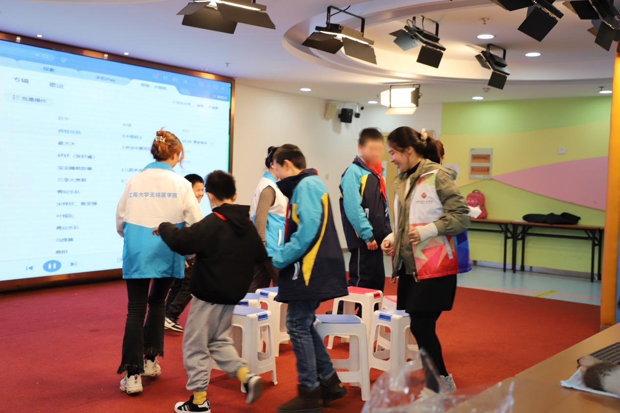手工制作环节,志愿者们给孩子们分发了画笔和画纸,一起教孩子们画画、折纸。志愿者还和孩子们一起进行了抢凳子、萝卜蹲和传话游戏,在游戏中促进和自闭症孩子们的沟通和交流。