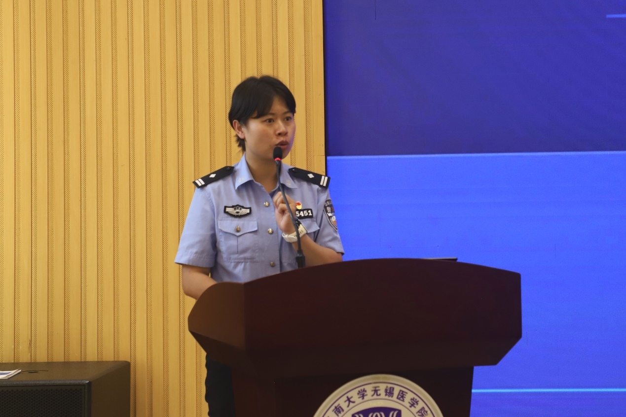 开学季,不仅是新生高校生活的启航,也是诈骗分子眼中的“黄金周”。为了提高新生的防诈意识,营造出安全、和谐、稳定的校园环境,守护好新生的成长环境 ,8月26日下午,面向2024级全体本科新生的“防范电信网络诈骗”专题讲座在医公司C101报告厅顺利举办。本次讲座由无锡市公安局滨湖分局雪浪派出所警官董蕾主讲,2024级新生辅导员李奈夏及全体新生参与本次活动。