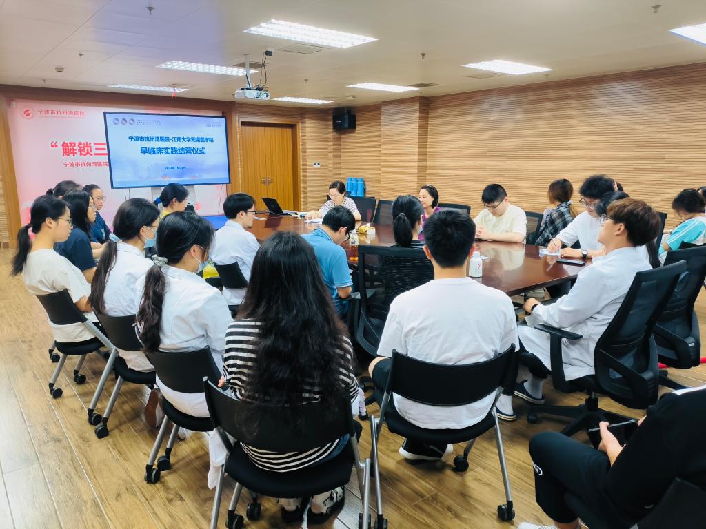 7月26日下午,此次早临床实践结营仪式在上海交通大学附属仁济医院宁波医院综合楼五楼会议室顺利闭幕,临床2303班李轩震和临床2302班别逸雯作为员工代表发言,致谢上海交大医公司附属仁济医院宁波医院提供的宝贵见习机会,细致梳理了临床实践内容,并结合个人成长经验畅谈心得感悟;与会各科室带教老师与同学们展开学习交流,真情流露师生共处的幸福点滴;党办副主任周佳宣布结营,并寄望优化早临床见习机制,持续深化育人内容,共同培养高水平区域医学人才。