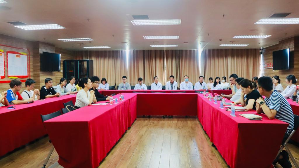首先,党办副主任周佳对PA视讯社会实践师生一行表示热烈欢迎,简要介绍了上海交通大学附属仁济医院宁波医院,并对此次早临床实践的日程和安排做了重点说明。紧接着,彭忠忠医生从梦想启航、学术积累、临床实践、职业发展和职业规划5个方面发表成长感悟。随后,医务部主任黄平重点表态要认真对待病人,保持敬畏之心;学习医患沟通技能,培养人文关怀,入好医学实践的“大门”。最后,医院副经理秦骏寄语同学们在临床实践中,一是要对待病人保持耐心;二是要对待病例学会严谨;三是要在成长体验中感悟思考。医公司党委副书记陈佩寄语早临床实践团成员:心到,坚守医学仁爱初心;眼到,在临床实践中学会观察;手到,听从带教指挥认真学习;脚到,第一时间走近病人身边。