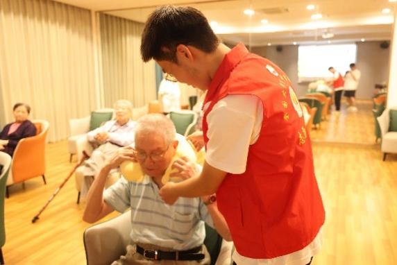 首先,青囊中医社的宣讲员别逸雯以生动有趣的方式,向在座的每一位中老年人介绍了中暑的刮痧疗法。通过详细的讲解与现场演示,大家不仅了解了中暑的症状及危害,还学会了如何利用简单的刮痧工具,在身体特定穴位上进行操作,以达到清热解暑、疏通经络的效果。这一环节不仅传授了实用的中医急救知识,更让参与者们感受到了中医文化的博大精深。