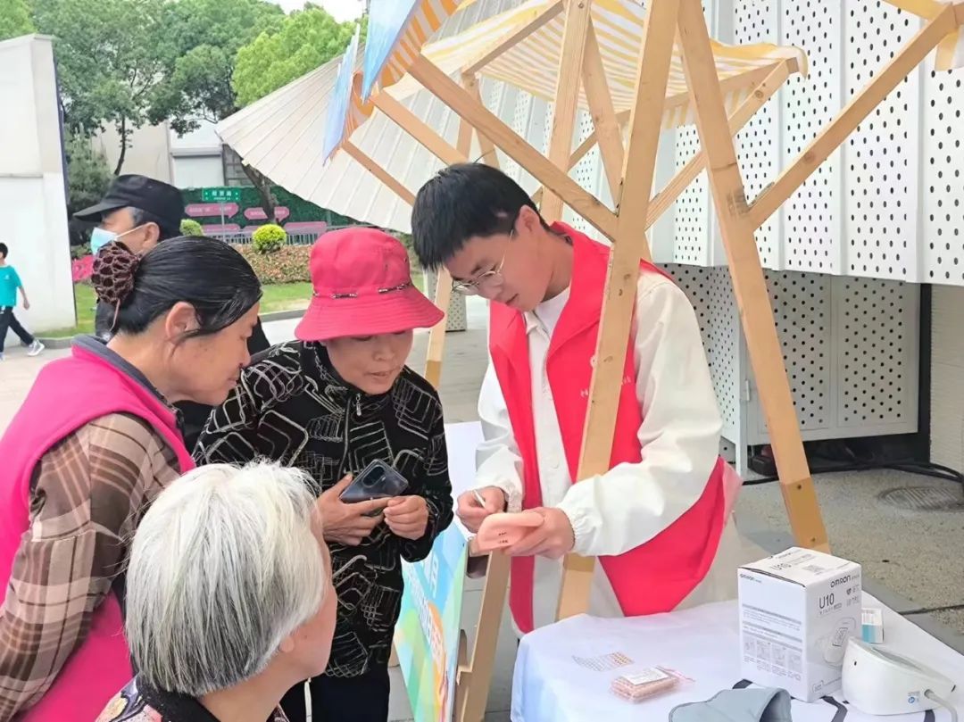 志愿者为市民提供血压测量服务