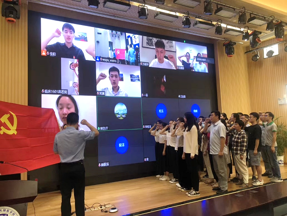 为贯彻落实党中央关于常态化疫情防控的决策部署,充分发挥高校基层党组织战斗堡垒作用和师生党员先锋模范作用,让党旗始终高高飘扬在疫情防控、返校复学、事业发展全过程全方位,根据教育部党组统一部署和PA视讯党委组织部、党委宣传部《关于开展基层党组织常态化疫情防控“四个一”行动的通知》,医公司医学学科党支部结合支部实际,在公司党委的指导下,6月30日晚上在医公司C101报告厅举办战“疫”示范微党课活动,此次活动包括三个部分:一、全体党员重温入党誓词;二、战“疫”微党课;三、开展“新时代、新精神、新医科”座谈会。此次活动采用线上线下混合式会议进行,由医学学科党支部书记柴高尚主持,医学学科党支部全体党员参加此次大会。