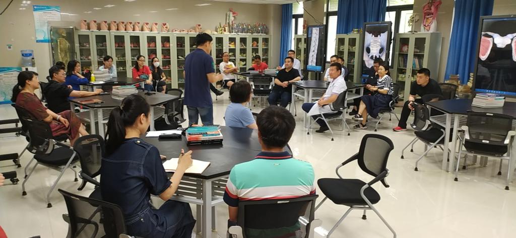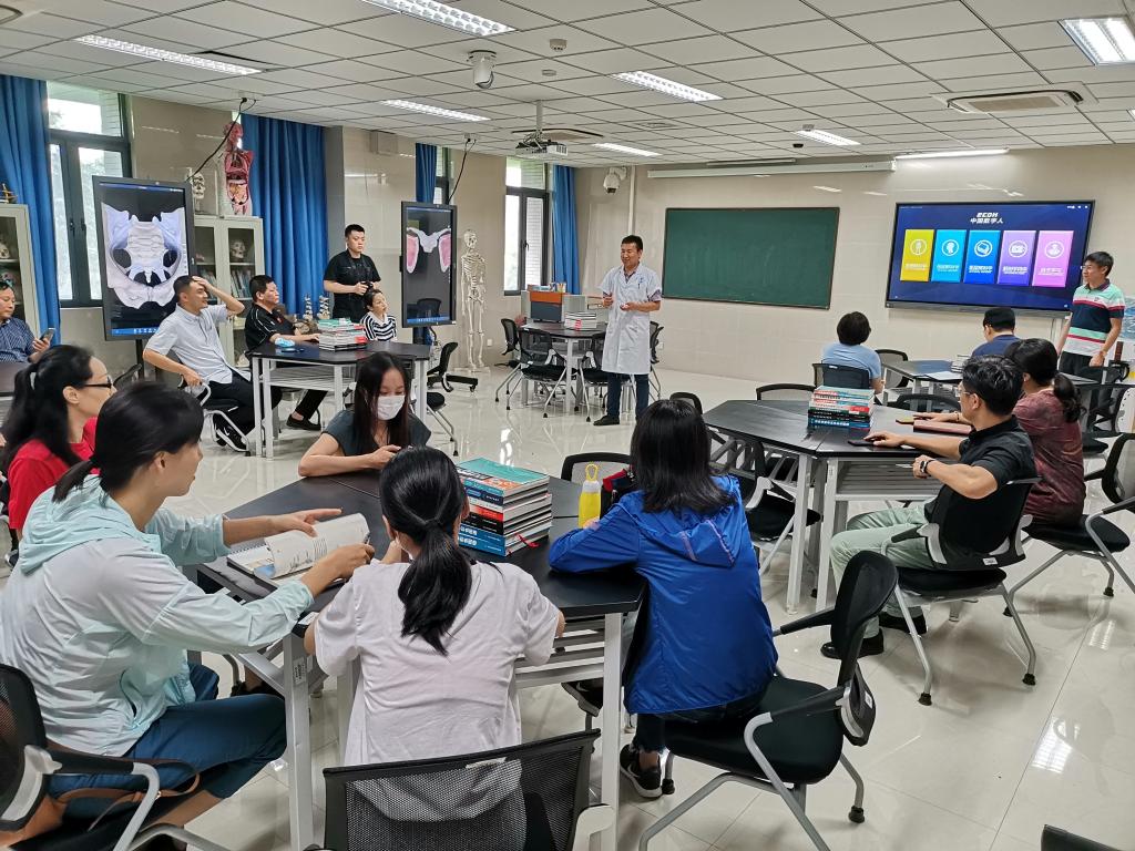 参观PA视讯人体科学馆后,大家在医公司D栋大楼人体解剖学实验室开展了热烈讨论:首先每位老师结合各自的专业特长进行自我介绍,然后就《体育健康学》《运动解剖学》等学科交叉课程的教学内容设计、教学方法、教学特色进行了广泛讨论,为课程教学大纲的制订和课程建设提供了框架方案。
