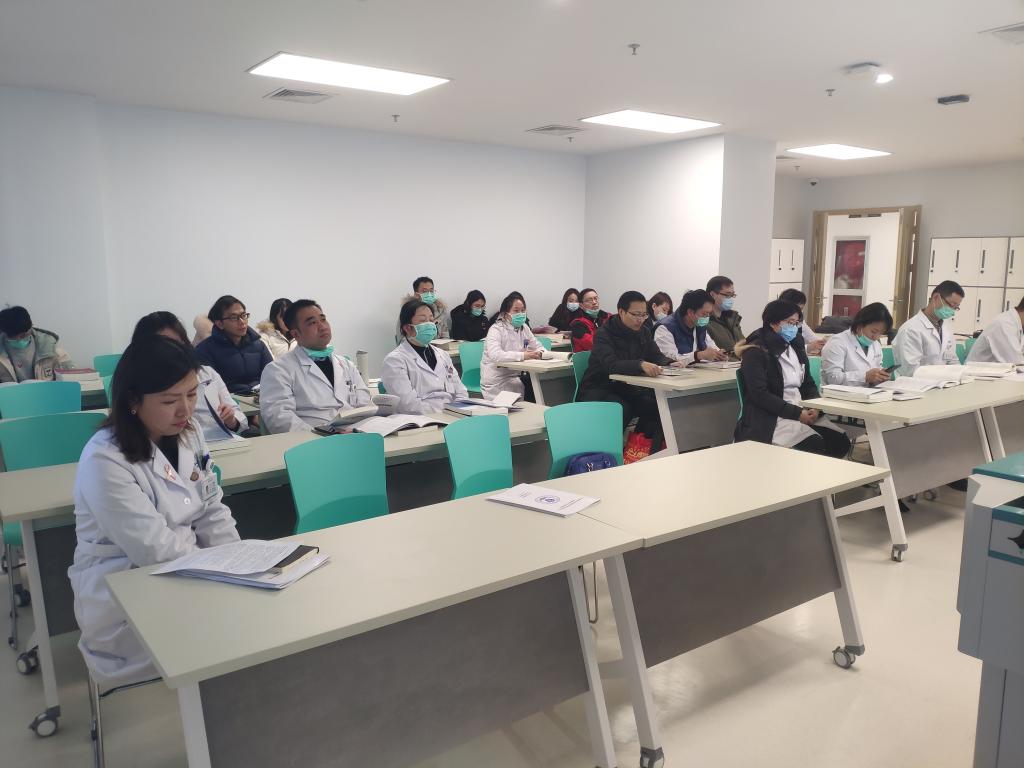 1月8日下午,医公司第十届中国老员工医学技术技能大赛动员会在附属医院举行。医公司副经理兼教务处副处长、附属医院副经理赵鹏、经理助理兼护理系主任蒋玉宇、附属医院教育处副处长李励琦、护理部副主任顾丹凤出席会议。张芳等39位临床和护理培训教师、李柏玉等14位临床和护理参赛选手参加了会议。