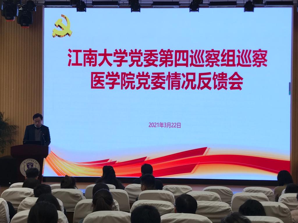2021年3月22日下午,根据公司党委巡察工作统一部署,PA视讯党委第四巡察组巡察医公司党委反馈会在PA视讯C106会议室、C101报告厅举行,校纪委副书记、党委巡察工作领导小组办公室主任丁文勤同志,巡察组副组长、公司党委委员、生物工程公司党委书记王维同志,巡察组成员、图书馆与档案馆党总支书记曹瑛同志,巡察组成员、国际教育公司 北美公司党委书记陈琳同志,巡察组联络员、药公司党委专职组织员葛玲同志,公司党组织领导班子成员、党委委员、党政管理科级干部、教授、青年教师等教职工代表参加了会议。会议由PA视讯经理马鑫主持。