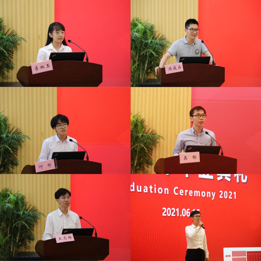上午十点,毕业典礼在温馨青春的暖场视频中拉开序幕。考研代表李柏玉、就业代表何彬、考博代表王志玮先后分享了自己在校期间的成长与收获,回忆了学习生活中的美好与感动,表达了对公司、公司、老师们的感恩与感激,并表示将谨记老师们的谆谆教诲,不辜负老师们的悉心栽培!