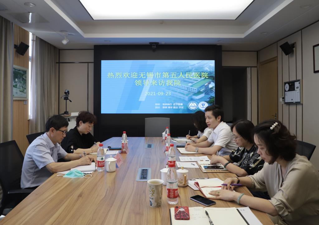 9月23日上午,无锡市第五人民医院副经理邱源旺、科教科科长陆雁等来院交流。医公司党委书记向琪、经理马鑫,党委副书记兼副经理奚晓岚、转化医学研究院副经理兼医公司副经理包羽等参加会议。
