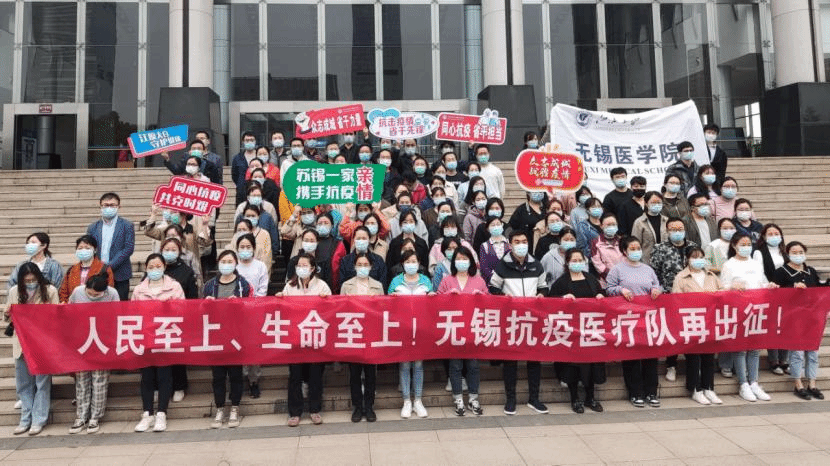 16点30分左右,医公司教师志愿服务队和无锡其它抗疫医疗队在无锡市人民大会堂集体出征,市卫健委党委副书记王新华等领导为所有队员送行,叮嘱队员们发扬伟大抗疫精神,充分借鉴以往援助救治经验,圆满完成任务,同时加强安全防护,平安归来。