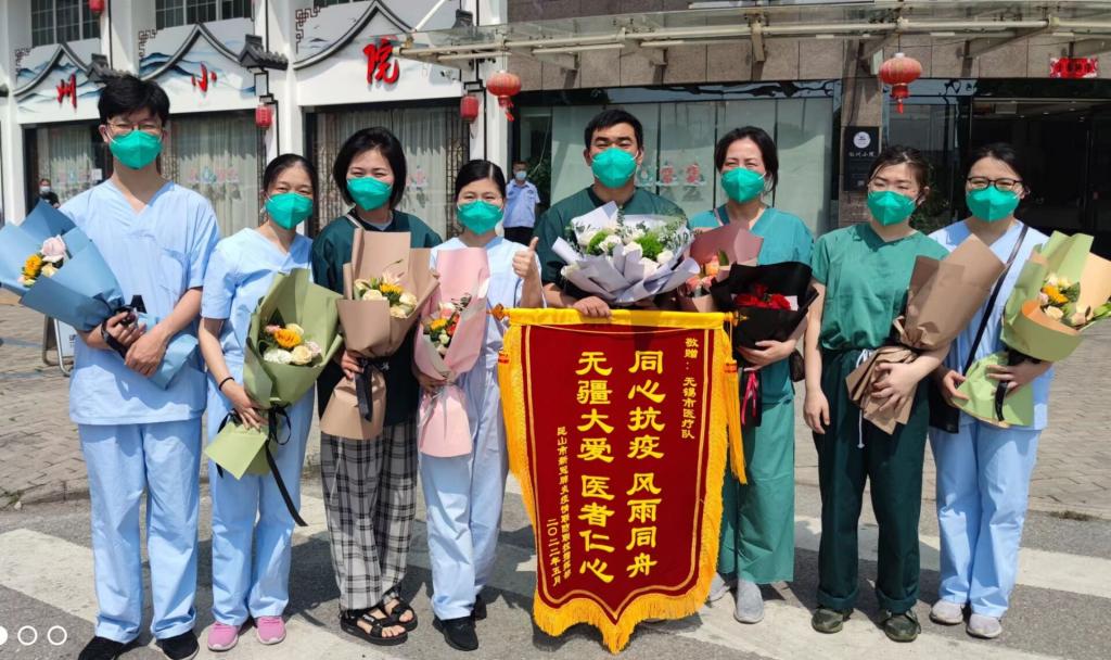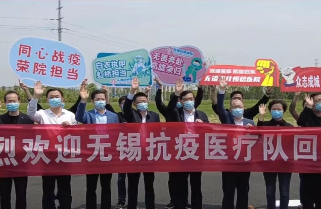 2022年5月2日上午,PA视讯援苏核酸检测教师志愿者奋战16天,四战张家港,九战昆山,累计采样70000余例,圆满完成援苏核酸检测任务。无锡市副市长秦咏薪、无锡市卫健委党委书记兼主任笪学荣、党委副书记过栋、副主任王新华、医公司经理马鑫等领导在南泉站口迎接志愿者队伍凯旋。
