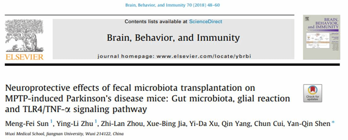 该研究另辟蹊径,将肠脑轴的思路创新性的应用到了帕金森病的发病机理研究中。实验表明,将帕金森症的小鼠的粪便菌群移植给正常小鼠后,后者产生运动障碍;正常小鼠的粪便菌群移植给帕金森症的小鼠后,可以缓解肠道菌群失调和运动障碍,降低SCFA含量。因此粪菌移植可抑制神经炎症并降低TLR4/TNF-α信号,以改善PD小鼠的症状。