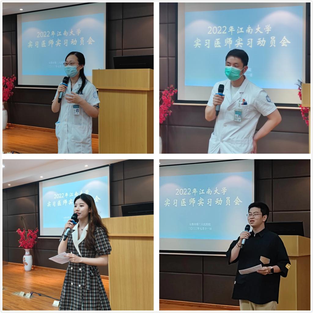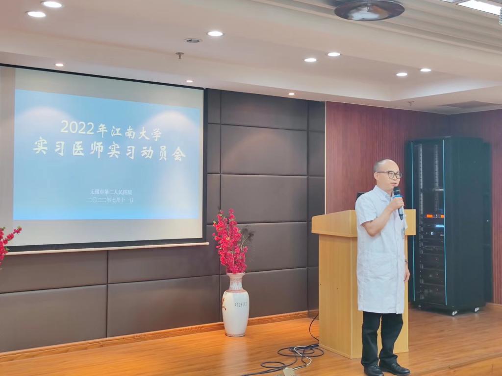 无锡市第二人民医院进点实习培训会在二院北院区举行,二院科教处处长赵霞主持会议。首先,夏加增副经理致欢迎辞,介绍了二院百年历史,期待同学们在二院获得丰富的医学知识和难忘的人生经历。而后,实习带教教师代表分享实习经验,提出实习是对所有科室基本知识基本技能全面了解的阶段,同学们应该保持热情保持好奇,积极练习各项临床基本操作,注重临床实践。接着院领导为实习生颁发实习用品和医院纪念品,而后实习生代表上台发言,承诺将抓住每一个学习和锻炼的机会,用实际行动践行“健康所系,性命相托”的誓言。最后,赵鹏副经理再一次详细解读2022年临床实习轮转计划。