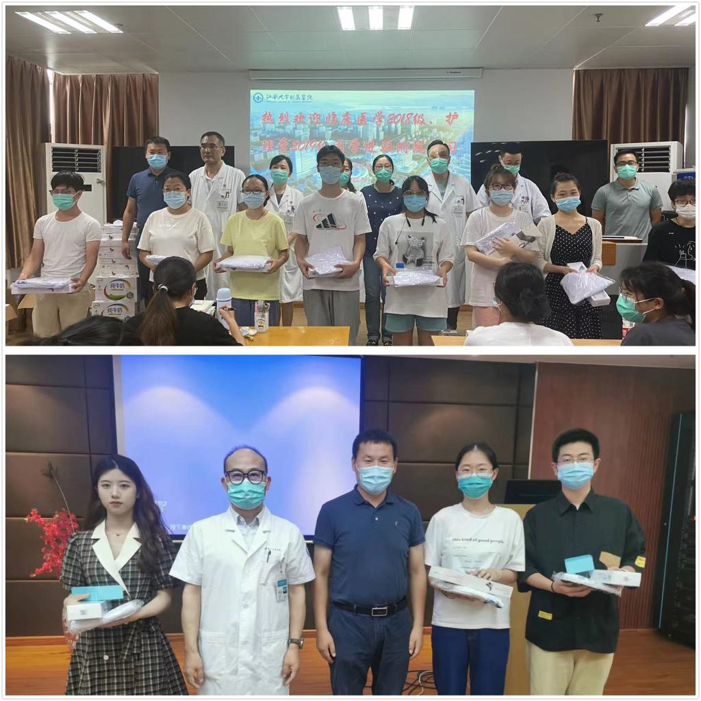 院领导和实习带教教师代表给实习生颁发实习用品和医院纪念品
