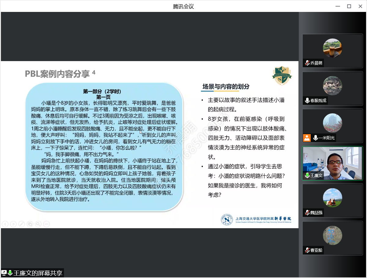 开班仪式由PA视讯附属医院教育处徐德武处长主持,徐处长从教育思维的转变与更新到PBL教学的理念、规律、特点及重要性等方面详细解读了PBL教学在临床医学专业教学中的特殊性和必要性。培训邀请了上海交通大学医公司PBL教学团队的专家线上授课,由专题讲座和实践训练两个部分组成。专题讲座涵盖了“如何做一名合格的PBL tutor”、“PBL撰写技巧及优秀案例分享”、“Workshop PBL案例撰写”;实践训练内容包括了“PBL带教示范”、“小组为单位的PBL工作坊”等。通过专题讲座和实践训练,老师们进一步了解了PBL教学的流程和环节以及PBL案例撰写的要求和技巧,对PBL教学理念与精髓、PBL教学方法有了更深刻的理解。