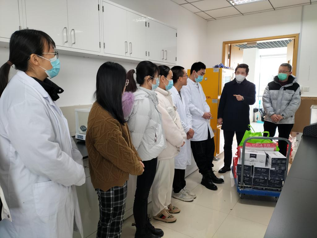 马鑫一行来到公司实验室,与留校员工进行了亲切交谈,了解每位同学的留校原因、科研进展以及在校生活情况,并送上新春慰问品,向留校员工致以节日的诚挚问候和新春的美好祝愿。马鑫表示,医公司有优越的科研环境,希望同学们能够追求卓越,向优秀的同学学习,好好利用这段时间追求更多的学术成就;公司有优美的校园环境,希望同学们在科研之余能够欣赏欣赏美景,放松心情,发现生活的美与好;公司还有一批关心大家的老师们,希望同学们遇到任何问题和困难,都要第一时间联系导师或辅导员,老师们会尽最大的努力为同学们提供帮助。他还叮嘱同学们在完成学习任务的同时要做好自我防护,注意人身和财产安全。