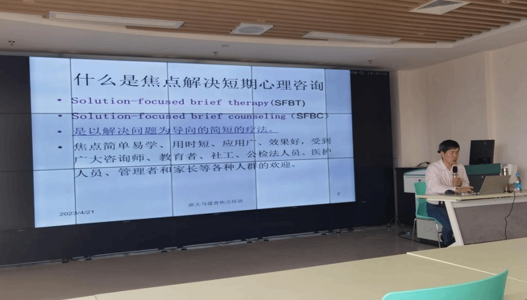 培训中,马教授详细向研究生导师们介绍焦点解决技术在短期心理咨询中的应用,对焦点解决的重要观点进行分析,运用丰富的实际案例向大家强调赋能的重要性。他在与研究生导师互动时强调,在与员工沟通时,要多运用正向引导,与员工建立互信关系,强化解决问题的目标。