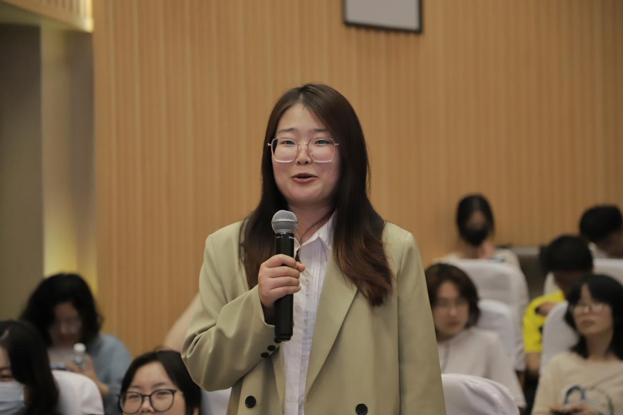 奚晓岚对本次讲座内容进行总结。她对马教授表示感谢,她指出马教授用多个生动案例向大家强调如何积极面对问题,营造良好关系,希望每位员工都能够拥有积极乐观、拼搏向上的心态。