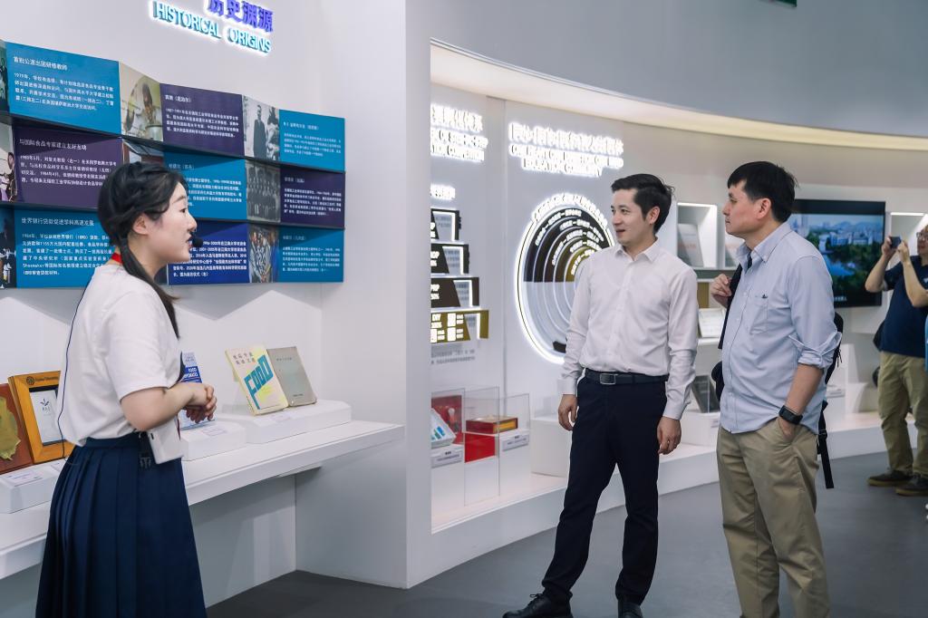 调研期间,马鑫陪同张文宏参观了医公司、设计公司、食品学科发展史馆。