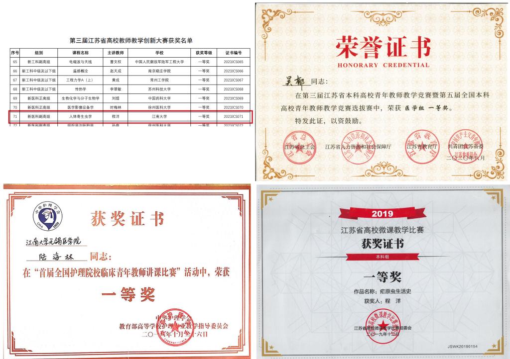 规范有效的团队培训推动了教学能力的提升。近年来,医公司教师在各类教学比赛中屡获佳绩,荣获全国护理院校临床青年教师讲课比赛一等奖1项、全国医学高等院校青年教师教学基本功比赛三等奖1项、江苏省高校教师教学创新大赛一等奖1项、江苏省高校青年教师教学竞赛一等奖2项、二等奖2项、江苏省高校微课教学比赛一等奖1项。