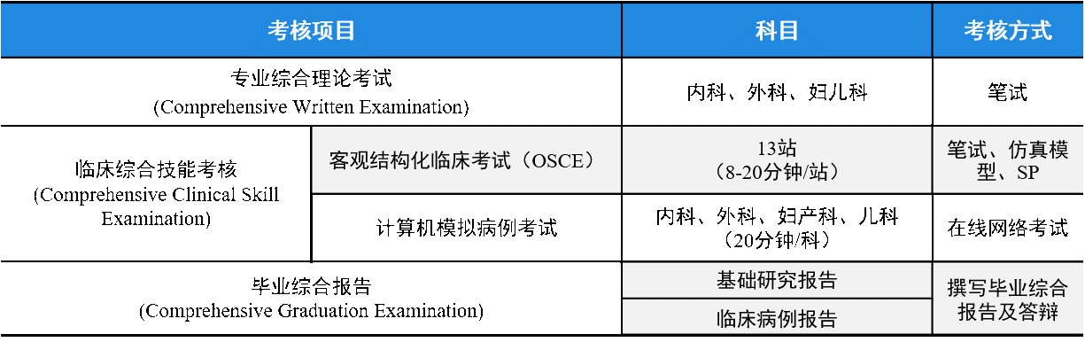 创新性实施“3C”(Comprehensive)模式的毕业综合考核,内容包括专业综合理论考试、临床综合技能考核和毕业综合报告。考察员工对专业知识的理解和应用能力、临床技能操作水平、临床思维、科研思维、分析问题和解决问题的能力。