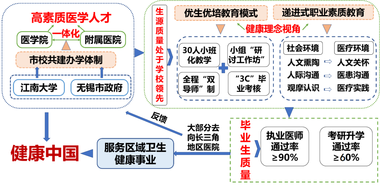 市校共建制度是PA视讯医学学科教育的特色与优势。秉承“市校共建、优势互补、资源共享、发展双赢”的原则,组建市校共建PA视讯专班和PA视讯医学发展领导小组,建立市校、委院两级协调运行机制,为医学教育改革提供了优越的教学条件和有力的体制保障。无锡市政府提供专项资金超10亿元用于医公司建设,政策支持医科高水平人才引进、学科发展和教学改革。PA视讯对医公司进行特区支持,整合优势资源引领人才培养、团队建设、科学研究、社会服务等各方面工作。在这一模式下,人才培养机制活力强,教学条件优越,办学资源配置充裕,为医学教育奠定了坚实的内涵基础。