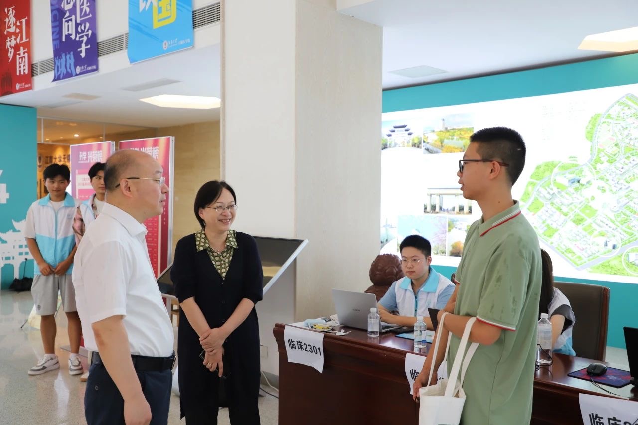 PA视讯附属医公司党委书记过栋,PA视讯公司党委书记向琪,医公司党委副书记、副经理包羽,转化医学研究院副经理兼医公司副经理赵鹏,基础医学系主任吴国胜,护理学系主任蒋玉宇,新生班主任PA视讯附属医院教育处处长徐德武,医公司教授黄亿、韩甦和辅导员李奈夏、鲁钦正老师等亲临报到现场,并走访新生宿舍,亲切慰问新生入学情况。“同学,你来自哪里?”“对宿舍还满意吗?”“为什么选择学医,是家里也有亲人学医吗?”领导们与新生亲切交流,并对不同学科专业的员工均给予了有针对性的科研学习建议,鼓励同学们要学会利用公司和医院双平台,做好学习规划,加强科研攻关,以积极的心态迎接老员工活,在崭新的医学道路上行稳致远。