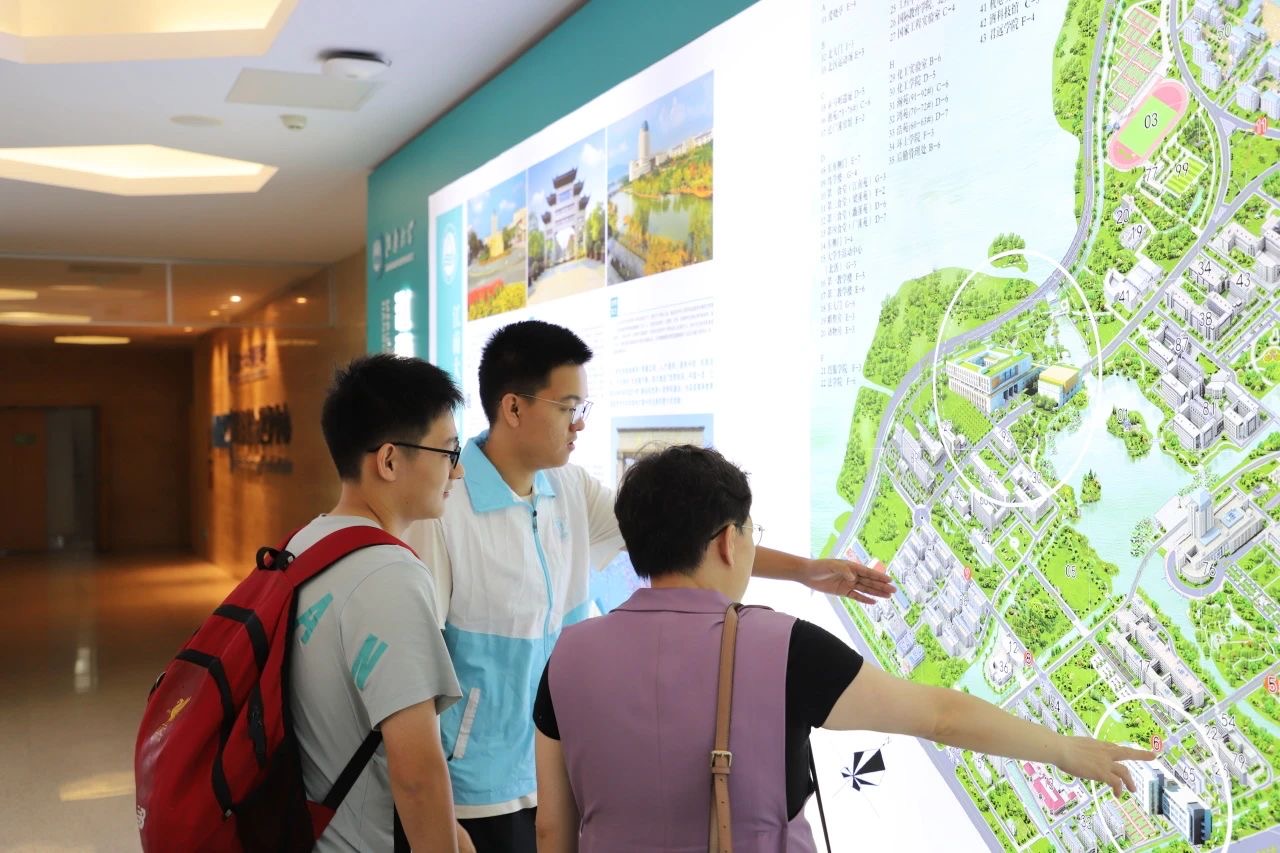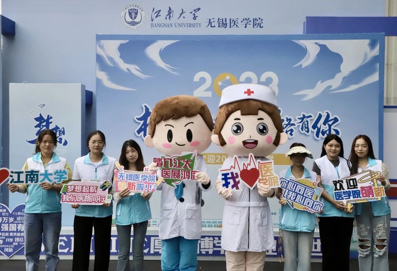 为了确保新生报到工作的顺利开展,老师和员工志愿者们做足了准备工作。他们搭建迎新摊位、调试迎新系统、准备迎新道具,培训院情学情宣讲志愿者。在公司门口放置有以“相约江南,医路有你”医护急救为主题的迎新喷绘展板,人脸镂空的男女医师喷绘设计可供新生打卡拍照。公司地面上铺设的医学特色地贴指导新生们每一步的报到流程,公司大厅的江南医学学科展示让新生们第一次了解江南、第一眼爱上江南、第一回即信任江南!一切的一切只为给新同学们留下值得回味的入学体验。