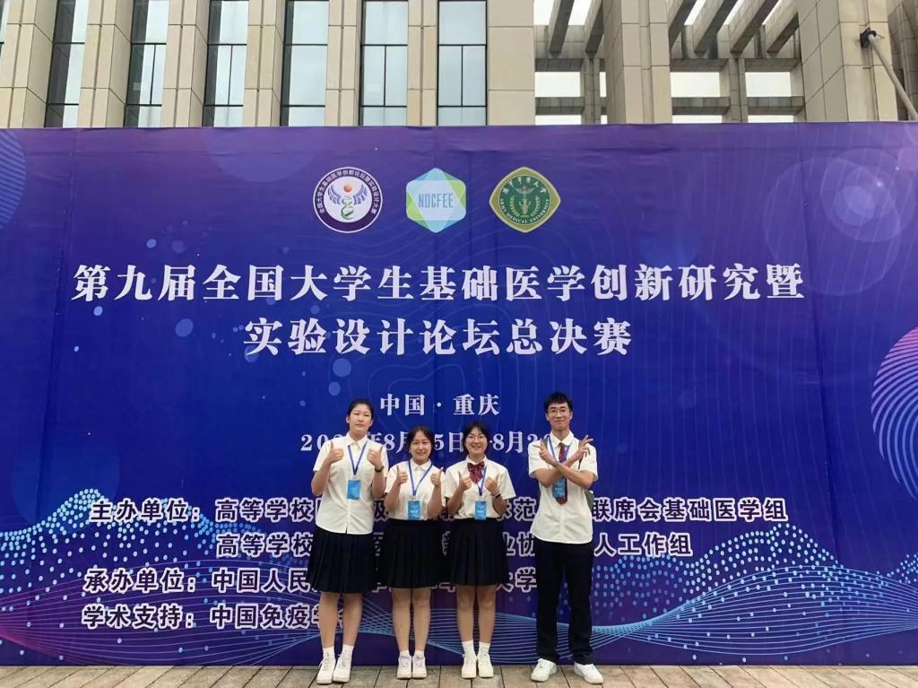 银奖由王雪、黄朝晖老师指导的史关祺、祝佳怡、杨欣玥、王炳基、余齐波员工团队获得,他们的参赛作品是“环状 RNA-CircPDHX抑制结直肠癌增殖及其机制研究”。由乔晨萌、申延琴老师指导的常磊、王锦、陈馨悦、申晓彤、许佳锋员工团队的参赛作品“Akk菌通过下调JAK2/STAT3通路缓解PD模型小鼠的神经炎症”和由葛雨秋、韩佩宇老师指导的陈鹤天、贺驿婷、盛吉祥、周奕员工团队参赛作品“衰老相关DNA甲基化:前列腺癌新生物标志物的发现及机制研究”获得全国铜奖。