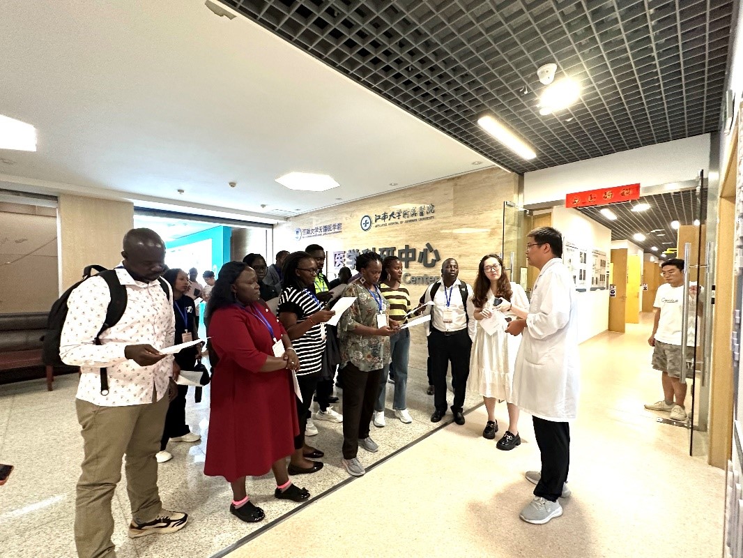 9月20日上午,由商务部主办、江苏省血吸虫病防治研究所承办的“一带一路”乌干达疫情管理和控制研修班一行18人在省血防研究所教学科科长王玠的陪同下来到PA视讯进行学习调研。PA视讯副经理陈雪、PA视讯国际员工招生工作办公室主任杨春龄陪同参观交流。