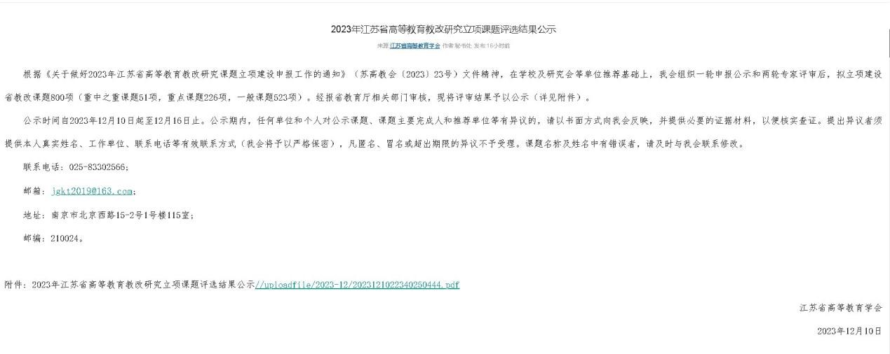 近日,江苏省高等教育学会公布了2023年江苏省高等教育教改研究课题立项名单,经公司推荐、专家遴选、江苏省高等教育学会公示和审定,公司马鑫、程洋领衔申报的《新医科背景下“医-食交叉”创新复合型医学专业课程建设改革研究》喜获重点课题立项,实现公司在高等教育教改方面新突破。