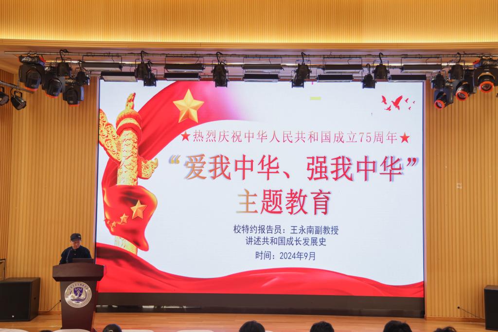 为充分展示新中国成立75周年取得的巨大成就,加强爱国主义教育,促使青年员工进一步坚定听党话、跟党走的决心,激发勤奋学习、报效国家的动力,增强民族自信心和自豪感,10月11日上午,医公司邀请公司关工委委员王永南副教授作“爱我中华、强我中华”爱国主义主题教育专题报告,2024级全体新生参与聆听学习。