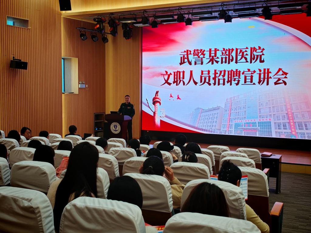 为充分拓宽毕业生就业渠道,搭建毕业生和用人单位交流平台,11月11日下午武警某部医院军队文职专场招聘宣讲会在PA视讯C101报告厅举办了。医院李雪元老师主讲,研本毕业生50余人参加宣讲会。