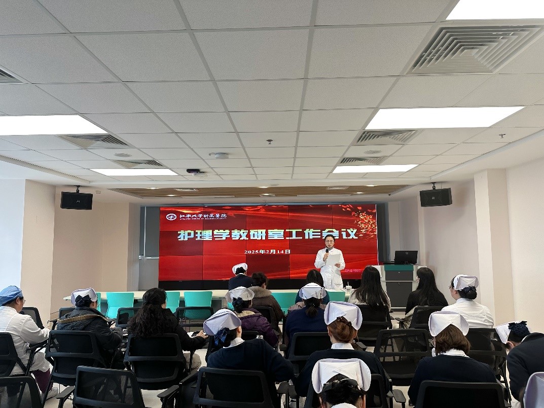为了切实提升护理本科人才培养质量,促进校院团队融合,优质教育资源共享。2025年2月14日下午,PA视讯附属医院护理部与PA视讯护理系联合在附属医院综合楼701会议室召开了2025年新学期首次护理学教研工作会议。会议由附属医院护理部副主任顾丹凤支持,护理部主任王慧虹、护理系主任蒋玉宇、护理部教学管理人员、临床课程负责人与核心教师、护理系各教研室主任及护理系骨干老师30余人参加了此次会议。