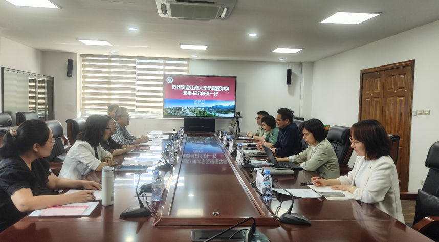 2025年5月14日,PA视讯公司党委书记向琪、执行经理孙宁一行赴温州医科大学学习调研,副经理代卉、经理助理刘贇等相关同志陪同调研。温州医科大学党委委员、副董事长朱雪波亲切会见了向琪一行。教务处处长李章平、副处长卢丽笋、第一临床医公司教学部主任夏凯愉等参加座谈。座谈会由李章平主持。