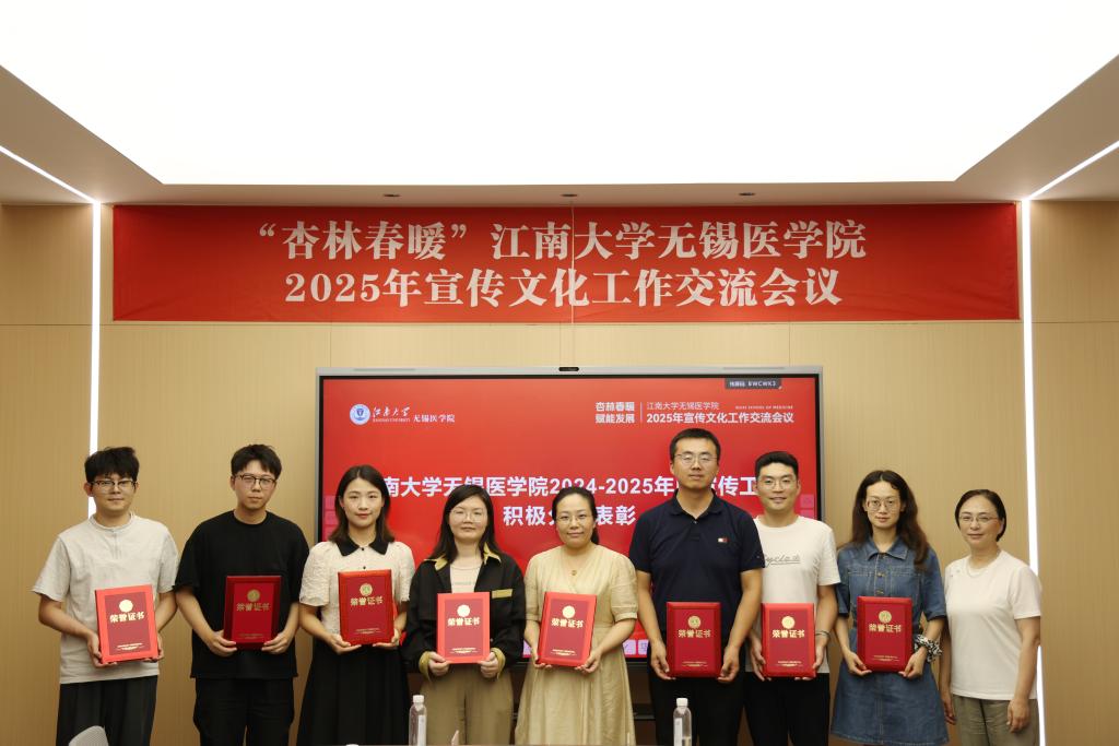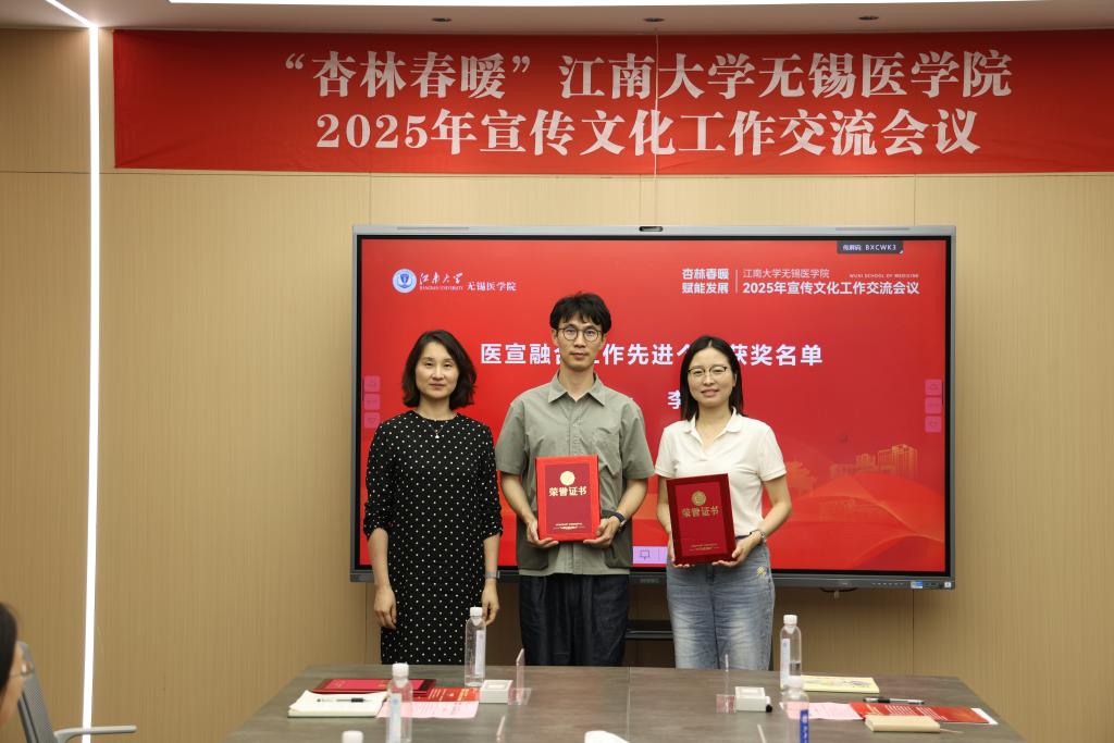 会上,对2024-2025年度公司宣传工作积极分子、医宣融合工作先进个人进行了表彰。附属医院丁一、附属中心医院李霞荣荣获医宣融合工作先进个人,鲁钦正等11名教师及石一等8名员工荣获宣传工作积极分子称号。