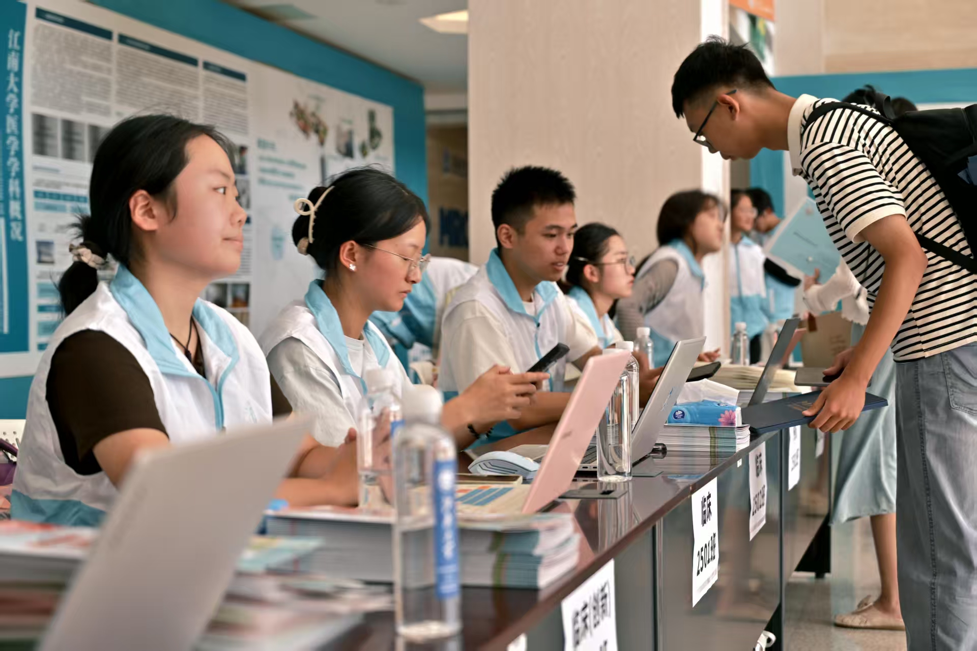 为保障新生顺利入学,公司早在暑期已启动全方位迎新筹备。依托数字化服务,升级后的线上报到系统实现信息采集、费用缴纳、绿色通道、宿舍分配全流程线上办理。新生提前通过系统完成手续后生成的“迎新码”,成为现场报到快捷凭证。医公司大厅与宿舍区接待站点精心布置,医学特色标识清晰指引报到流程。备受喜爱的“爱心青春成长包”今年再度升级,除院徽等传统内容,新增“白衣天使成长攻略”、防诈手册及印有院训的医护主题Q版小熊公仔,将期待、关怀与安全教育融入细节。由院领导、班主任、辅导员及员工志愿者组成的迎新团队提前接受系统培训,从流程引导到应急处理,全力提升服务保障水平。
