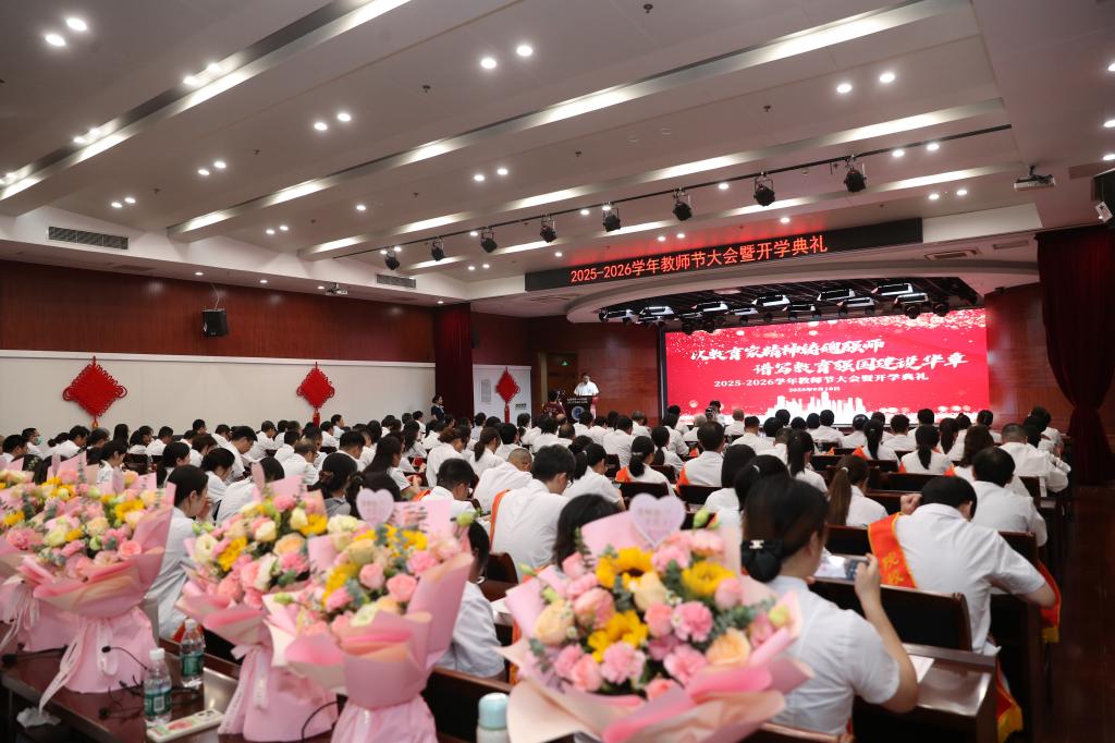 下午,PA视讯附属中心医院举办2025-2026学年教师节大会暨开学典礼。公司党委书记向琪、执行经理孙宁受邀出席本次大会。向琪向在场的老师们表达了诚挚的敬意和感激。她总结了近年来公司医学专业取得的长足发展和进步,并指出,这离不开医院在人才培养、学科内涵建设方面做出的巨大贡献,为医学学子拓宽成长成才的平台与渠道、提供了更宽广的视野。向琪强调,公司高度重视与医院的全方位合作,在“十五五”规划到来之际,更要促进院校高度融合、医教协调发展、合作开创新的篇章,为健康中国建设添砖加瓦。随后执行经理孙宁为赵晖、倪景斌、许颖三位颁发PA视讯优秀带教老师荣誉证书。