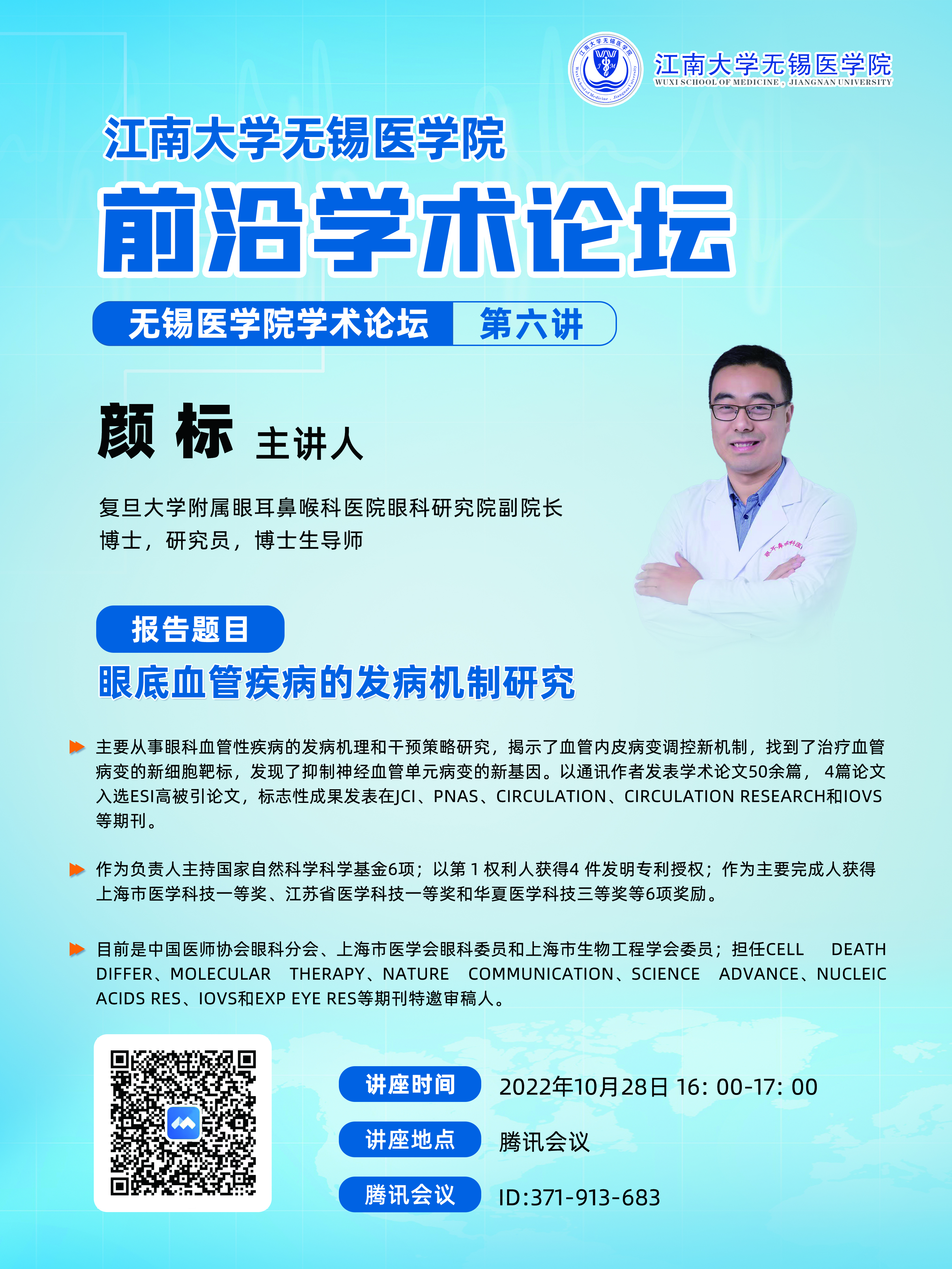 10月28日PA视讯前沿学术论坛 第六讲——颜标:眼底血管疾病的发病机制研究