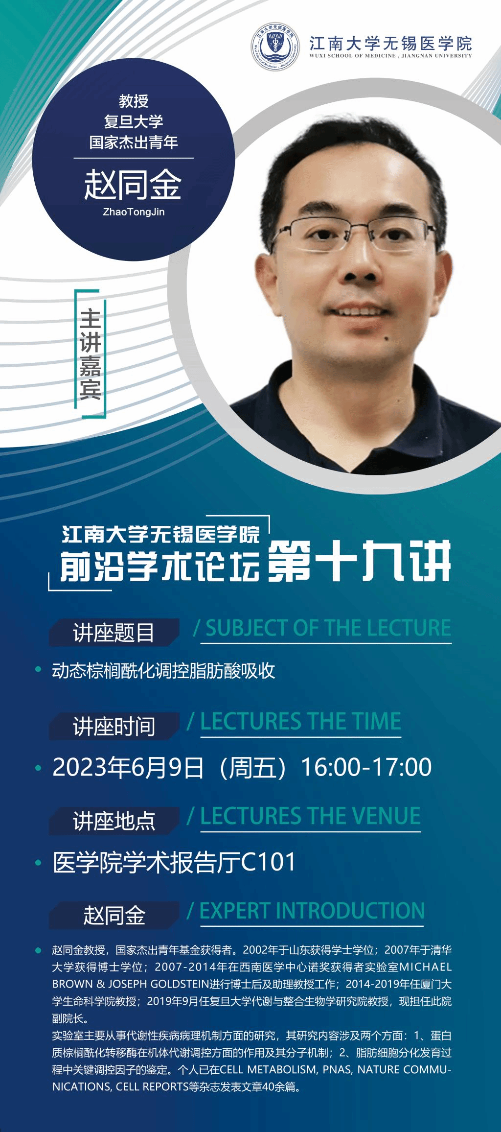 6月9日PA视讯前沿学术论坛第十九讲 丁健教授和赵同金教授-线粒体-细胞内外环境互作偶联/动态棕榈酰化调控脂肪酸吸收