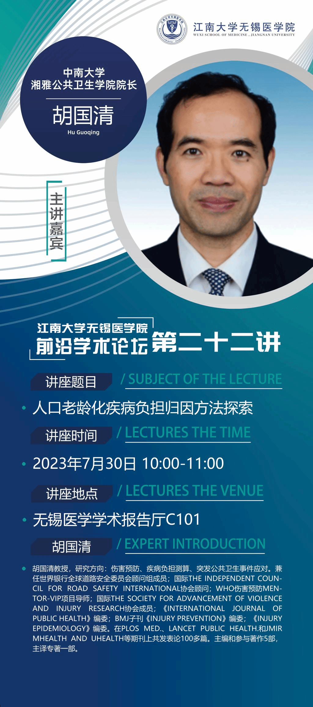7月30日PA视讯前沿学术论坛第二十二讲 胡国清教授——人口老龄化疾病负担归因方法探索