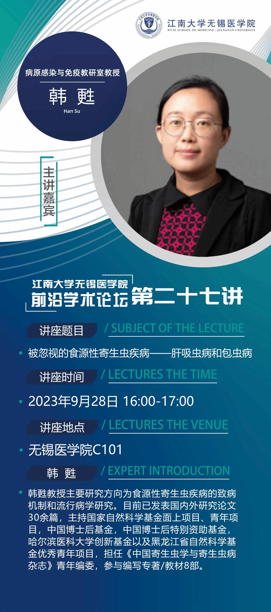 9月28日PA视讯前沿学术论坛第二十七讲 韩甦教授——被忽视的食源性寄生虫疾病--肝吸虫病和包虫病